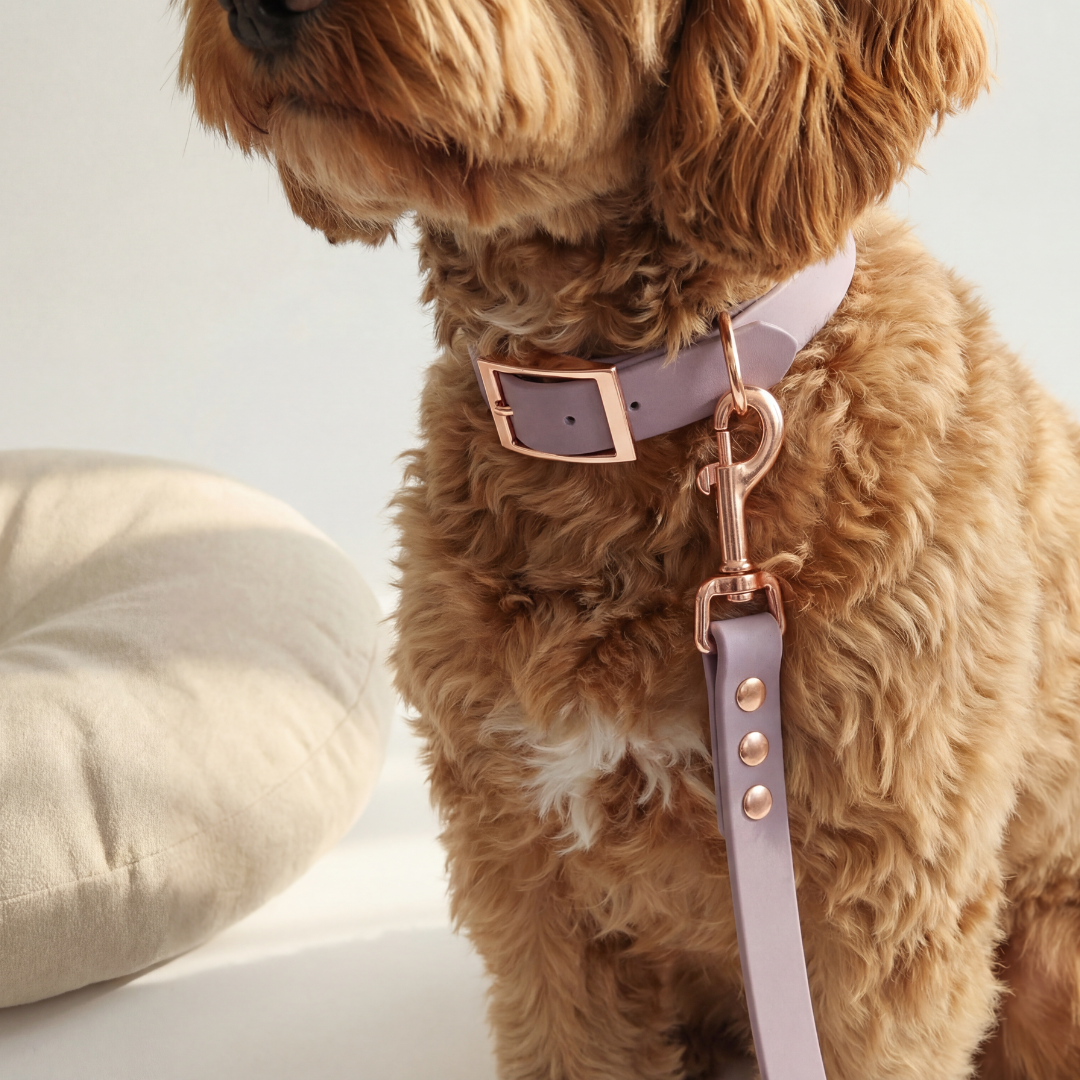 Elevate your pet's gear with our matching set, including a waterproof Biothane personalized collar and a matching leash. Add your pet's name to either item for a personal touch, and enjoy the ease of getting everything you need in one package.